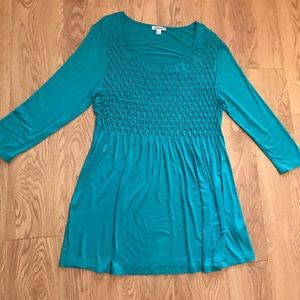 6/$20 Mountain Mamas Boutique Brand Dress in Excellent preloved condition. Comes in teal and the puckering weave design is accented with beads.