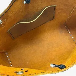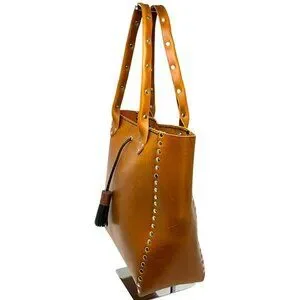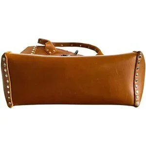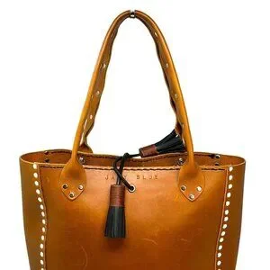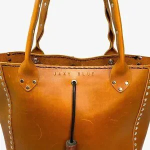 Jaxy Blue Medium Leather Tote Bag Brown Handmade Studded Western Tassel Pocket