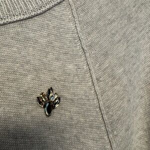 Chic light gray sweater featuring sparkling jewel accents. Ideal for adding elegance to any outfit.