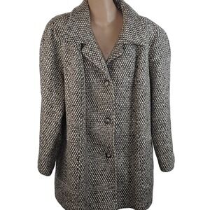 Vintage Roaman's Coat Womens 26 Gray Wool Check Tweed Length Overcoat Plus Size