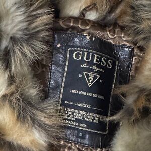 Chic faux fur vest with cable knit sides. Features brown and cream tones. Ideal for layering.