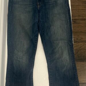 Stylish cropped jeans by MOTHER. Sky blue hue. Ideal for everyday wear.