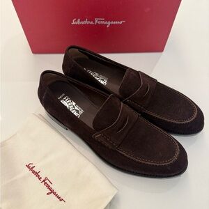 $1490 Salvatore Ferragamo Loris Tramezza Hickory Suede Penny Loafers Men’s 8.5 D