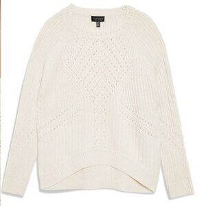 Topshop chunky crop eyelet knit sweater in cream / ivory / off-white.