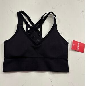 NWT Spanx black low impact athletic sport bra built-in cup liner size XS. Voted best support and most comfortable training and athletic bra crisscross support pattern in the back the cut in the front smooth grip around the chest. See photos for extra description MSRP $62