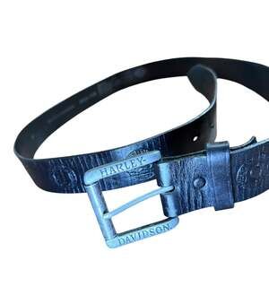 Harley-Davidson Men's Black Tooled Genuine Cowhide Leather Belt, Size 44 — Made in USA.