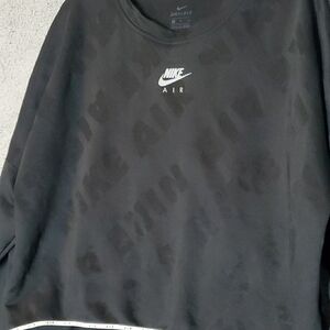 Black long sleeve shirt with reflective Nike logo. Simple and stylish design.