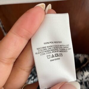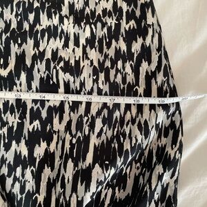 Sexy, classy and lightweight dress with an abstract print in cream, black, and a shimmery silver-blue. Much more stunning I person!