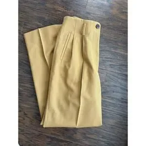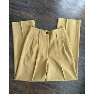 VTG 100% Wool Mustard Pleat Straight High Waist Pant Slack Trouser Size 10 Twee