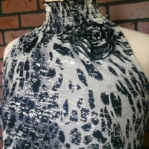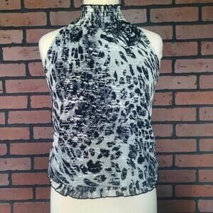 I.N. San Francisco Silver Metallic Animal Print Sleeveless Going Out Top