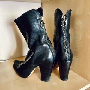 Fiorentini + Baker Black Heeled Leather Boots brass zipper size 36 (US 5.5/6)