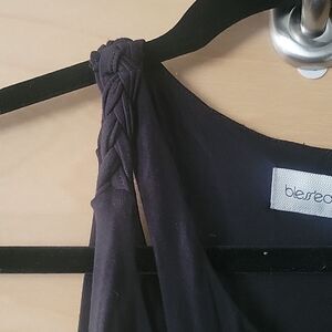 Lined at Torso / Front and back overlay with cut out details / Braided accents on shoulder straps / Side slit / Fitted Body Con / Soft and Stretchy / Medium Weight