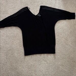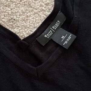 Good condition with minor wear. See photos for details and measurements. No major flaws. Elegant black knit top with a classic V-neck design. Ideal for versatile styling.