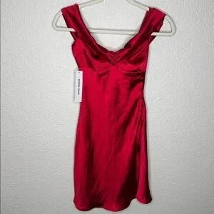NWT Princess Polly Sadee Red Off the Shoulder Mini Dress Size 2 Date Night Satin