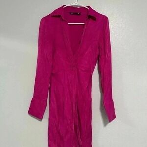 90. Zara Pink Twist Front LongSleeved Dress Womens Sz XS