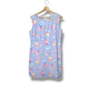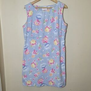 Liz Claiborne Vintage 90s Floral Chambray Dress Cottagecore Pastel Sun Washed 14