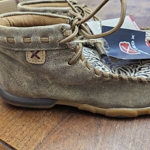 Step out in style with Twisted X women's Floral Moccasins. Featuring a unique floral design in black and tan, these shoes offer both comfort and flair. Perfect for casual outings.