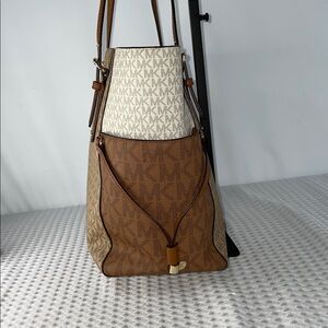 MICHAEL KORS VOYAGER LARGE COLOR BLOCK SIGNATURE TOTE W/ WRISTLET FTL-01-028