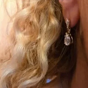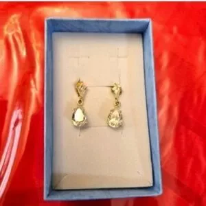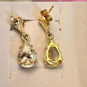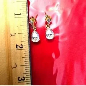 482-14kt solid yellow gold hanging earrings with cubic zirconia pear shape design hanging on the bottom, Earrings marked 14kt gold on back of earrings as in picture. Earrings measures are about 3/4" inch long used like new.