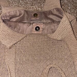 This woven tan women's tote bag is perfect for any occasion. It has a magnetic clasp to close it, and it can hold many items. Use it for a casual outing or even as a beach bag!