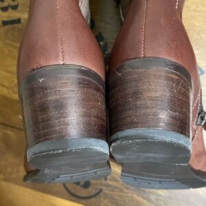 CHARLES DAVID Brown Tan Buckle Moto Sherpa Lined Boots Size 37 US 6.5