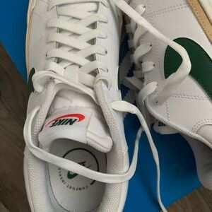 Nike Court Legacy Lift Platform White and Green Sneakers with Tan Accents