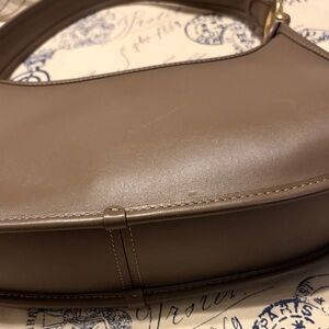 Elegant Coach shoulder bag with a smooth brown finish. Features stylish gold hardware. Perfect for any occasion.