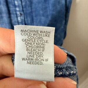 This dress is amazing! It looks like a distressed denim dress but is actually VERY soft cotton with a knit feel to it- you would never know by looking at it though! It fits comfortably with a loose, relaxed feel. Absolutely excellent condition.