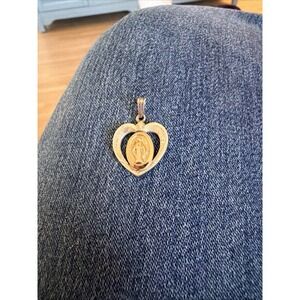 This product is a sterling silver and 14k gold pendant featuring a Miraculous Medal with an image of Mother Mary, a symbol of faith and devotion in Christianity. It is a religious charm that can be worn as a necklace or bracelet, serving as a reminder of one's faith and connection to the beliefs of Christianity. Perfect for those seeking a meaningful and spiritual accessory that reflects their religious values and practices.