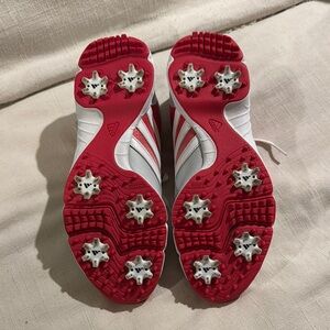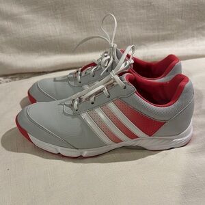 Step out on the fairway in style with these Adidas women's golf shoes. Featuring a sleek Grey and Coral design, these shoes offer both comfort and fashion while on the putting green.