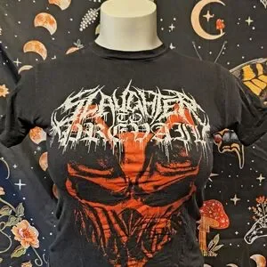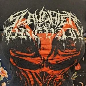 slaughter to prevail Black t-shirt with bold red graphic design. Features a striking print on the front.