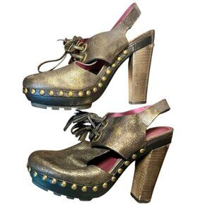Coach High Heels Size 7.5 Brown Leather Indie Grunge Studded Metallic Steam Punk