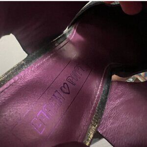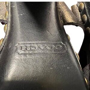 Coach Poppy collab. Excellent overall condition. Super high heel. Strappy. Close toed. Coach brand on the lace up grommets and on the back of the heel. Lots of neat details. Lots of studs. "Rena"