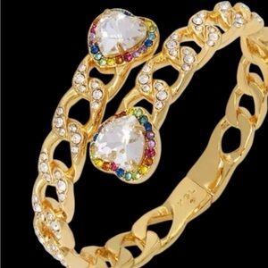 New KURT GEIGER LONDON Rainbow Crystal Heart Chain Bypass Bangle Bracelet