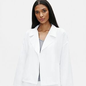 Eileen Fisher Jacket Open Front Double Breasted Notch Collar Linen White M NWT