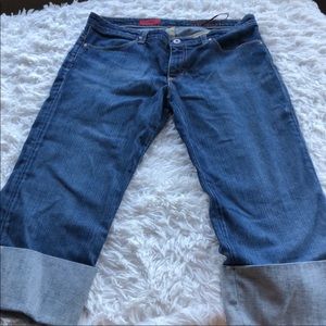 AG Adriano Goldschmeid capri denim jeans. “The Shorty”, featuring wide embellished cuff and slim fit.