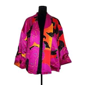 Della Roufogali Vtg Silk Oversized Open Front Floral Kimono Style Jacket Size 8