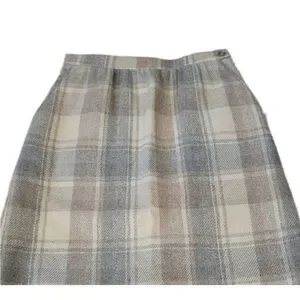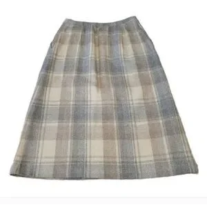 Chic A-line skirt with a classic plaid pattern. Features a blend of gray and cream tones. Perfect for a timeless look. Has pockets and isrepost! The back of the waistband is elasticated so it has a little stretch to it.