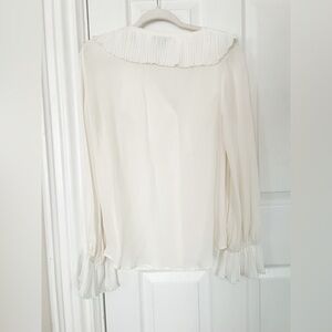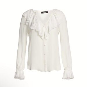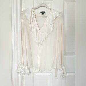 Sophisticated cream blouse with ruffled neckline. Perfect for a refined look.