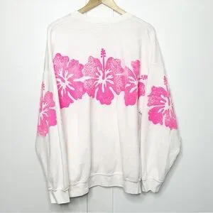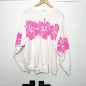 Free People x Tricia Fix Hibiscus Crew Sweatshirt Large hot pink floral Hawaiian