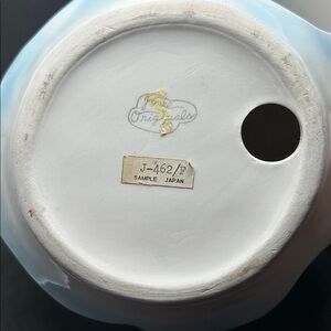 Charming porcelain figurine of a lady in a blue dress with pink floral accents. Elegant and timeless design.