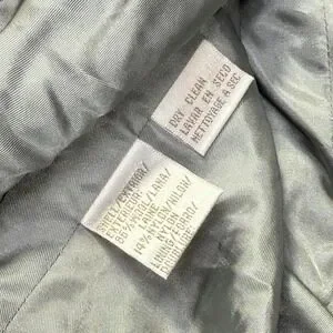 • Thread thinning on left back sleeve with underlayer visible (see close-up photo). Does not affect wear, priced accordingly.