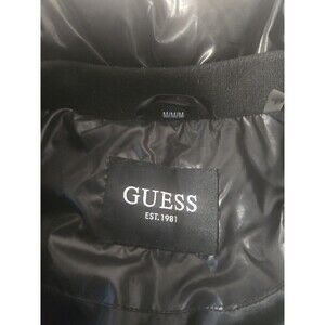 Guess Women's Puffer Coat Size Medium Shiny Black Winter Chic Cute Quilted Zip