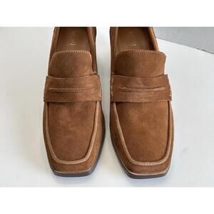 NYDJ Anella Heeled Loafers Women's 8M Cognac Brown Suede Slip On Shoes