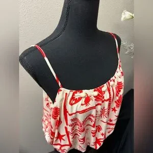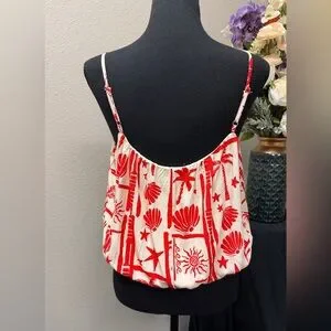 Peach Bohemian Orange & Off-White Shell Lined Bubble Style Hem Cami Top -Size M