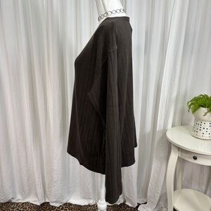 Elegant dark brown V-neck sweater. Ribbed texture adds style. Ideal for layering.