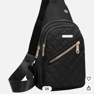 Stylish black quilted crossbody bag. Features gold zippers and accents. Perfect for everyday use. adjustable strap, secure, no flaws new.