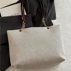 ⚠️Clearance Chain Shoulder Tote Bag Elegant Cream Bag with Gold Accents