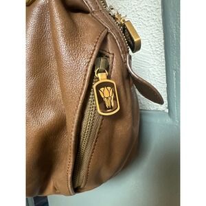 ISABELLA FIORE Brown Leather Embroidered Medallion Shoulder Bag Hobo