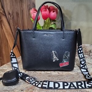Karl Lagerfeld NWT Paris Maybelle Black & Silver Med. Satchel Handbag Crossbody